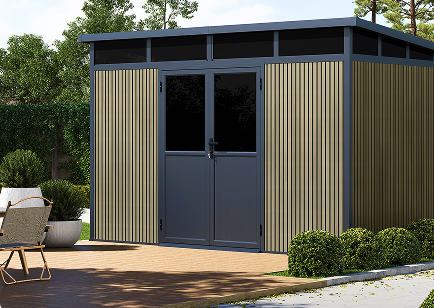 The Maggiore's WPC panels deliver the natural look of wood without the maintenance that comes with a traditional wood shed. No painting, staining, or sealing is required. Compared to resin storage sheds, the Maggiore weighs nearly twice as much, creating a substantially more rigid and stable structure with a premium feel. The aluminum frame and galvanized steel metal roof provide superior weather protection and durability compared to both wood and resin alternatives across all shed sizes.
